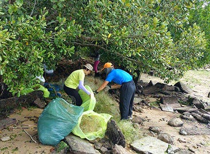 Cleaning up trash is one of the key aspects of helping restore the mangroves at Pulau Ubin.